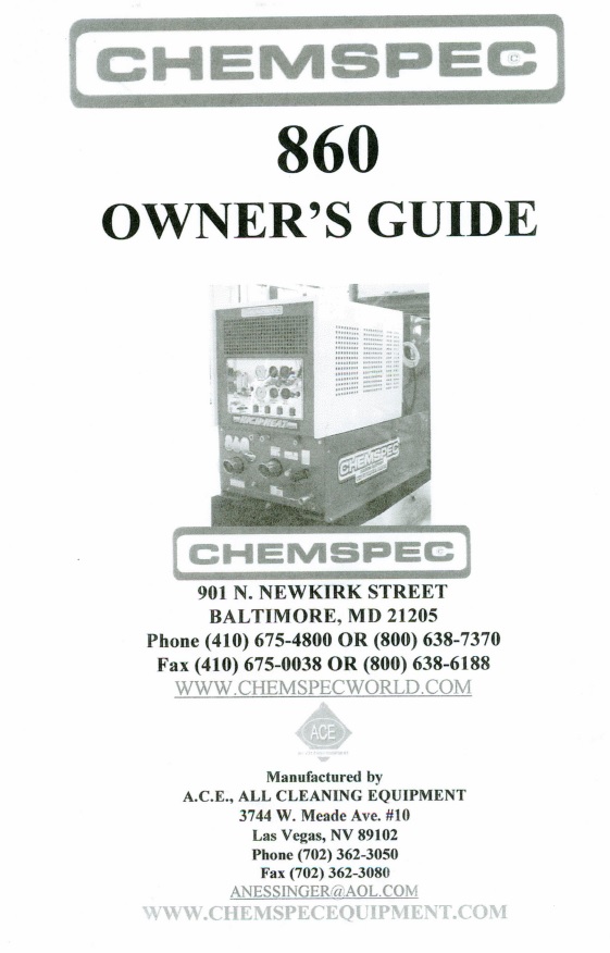 Chemspec 860 Service Manual 2015-11-19