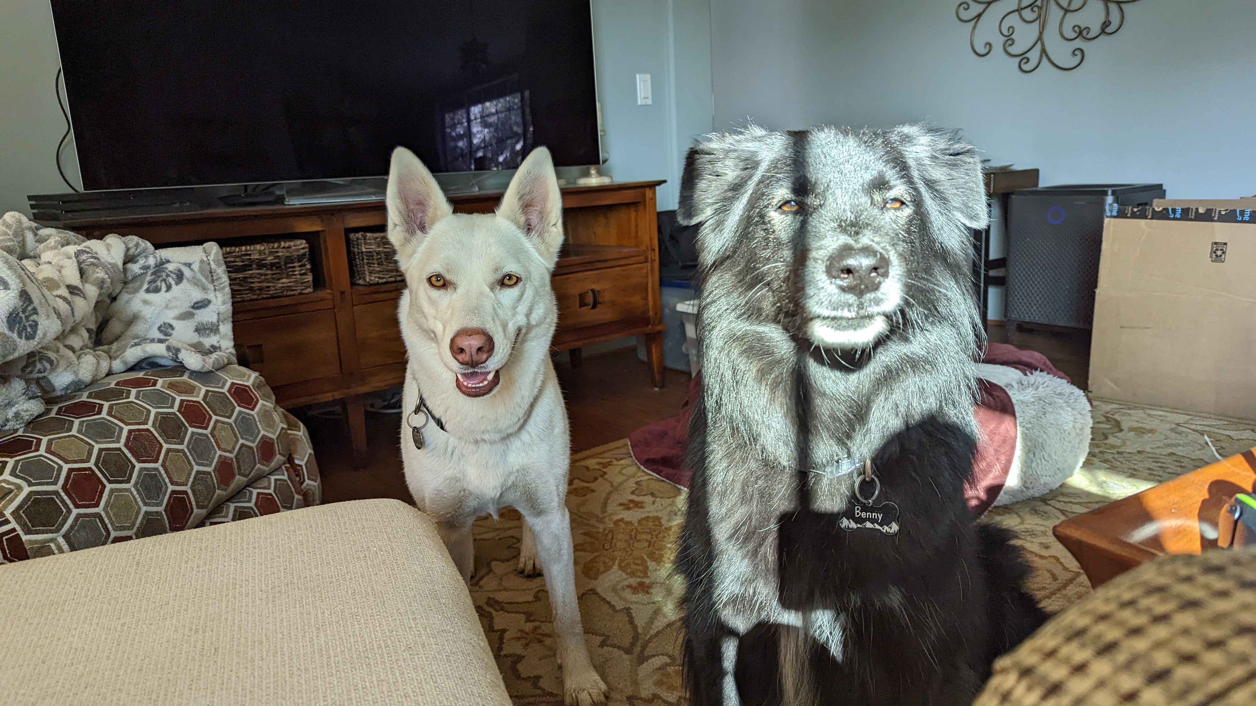 This little gal has rights to this large sectional.