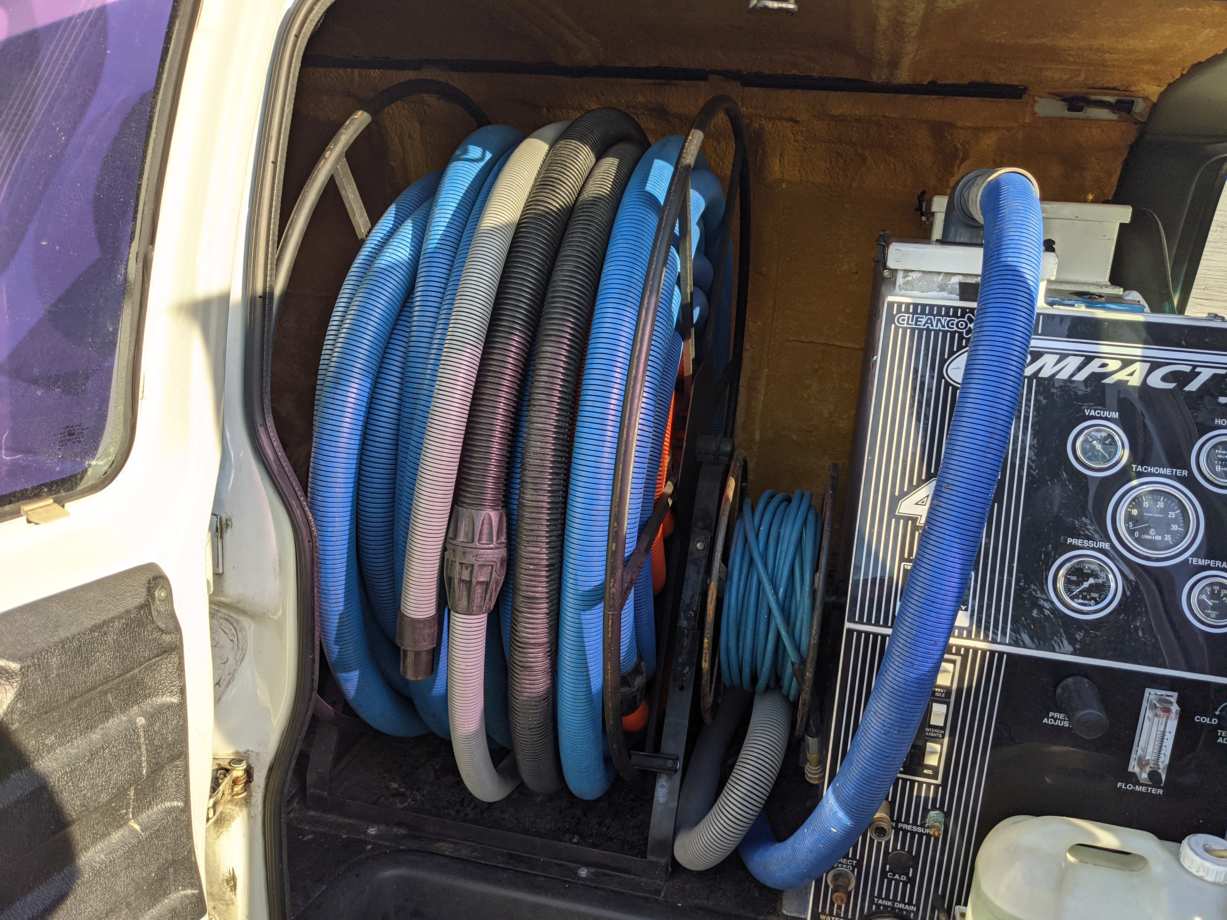 For a 20 year old van, it's in great shape. The reel is so easy to turn I don't need any help. Different if your reel is mounted deeper in the truck. One of the things to think about is, what happens if your electric reel malfunctions? Blows a breaker or fuse? How difficult is it now to manually roll up your hoses connected to an electric drive motor? Can you easily disconnect the motor from the reel?