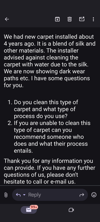 Email inquiry about silk carpet Cleaning