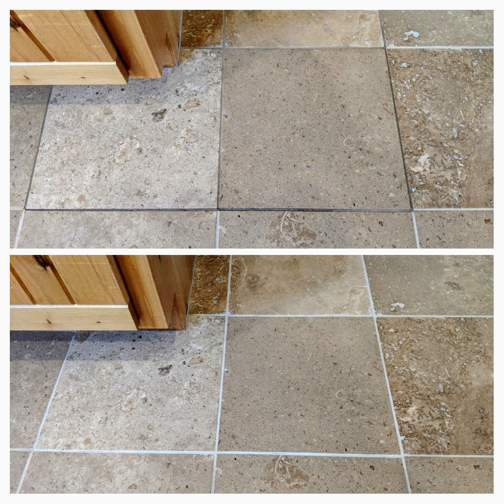 handyman replace these two tiles and match the new grout that dirty old grout well guess what happened after I clean the floor...