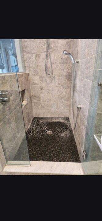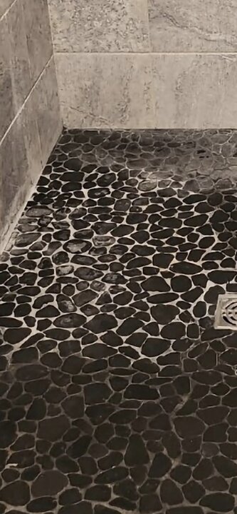 It looked better immediately after I finished, but the minerals wicked up to the surface in just a few minutes. I set the customers expectations well beforehand so they were happy with it all. I was in that shower for way too long. I'm going up on my shower prices. They didn't opt for an enhancing sealer to temporarily hide the whitish remains in the grout. This is what it looked like before I worked on it.