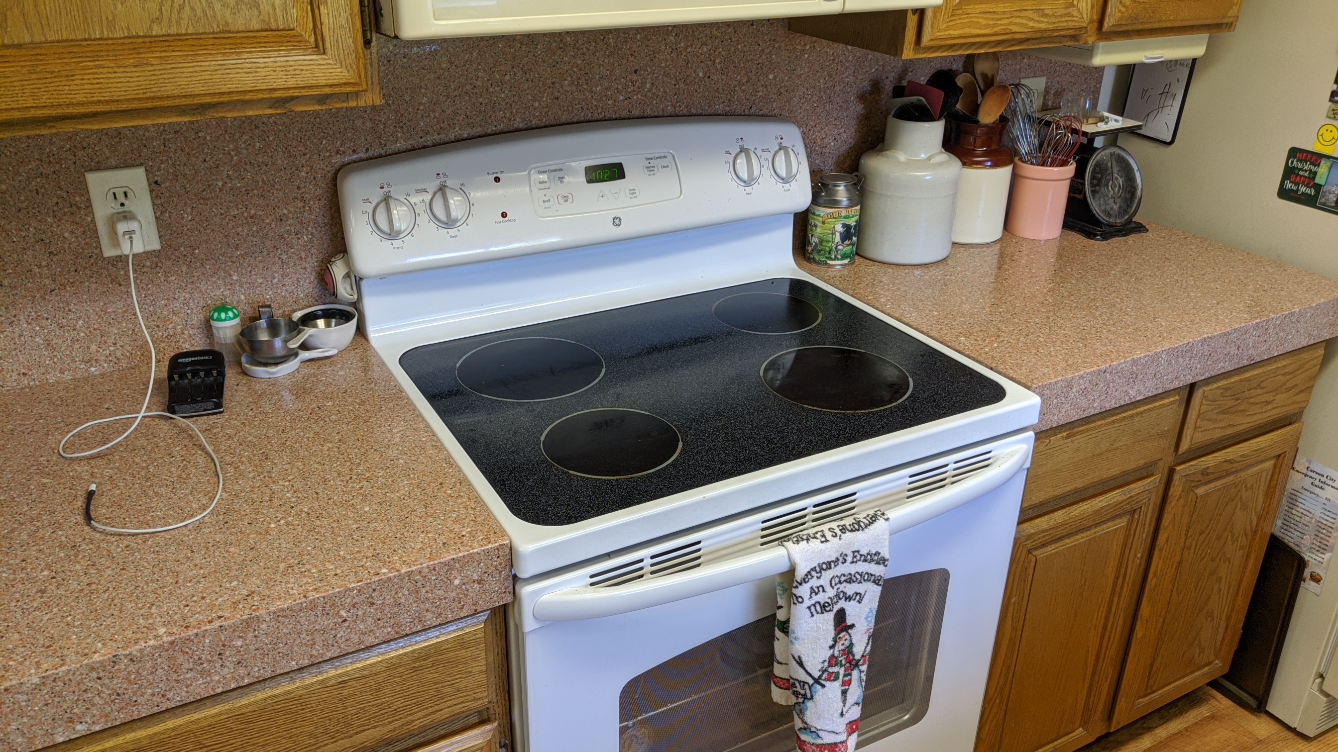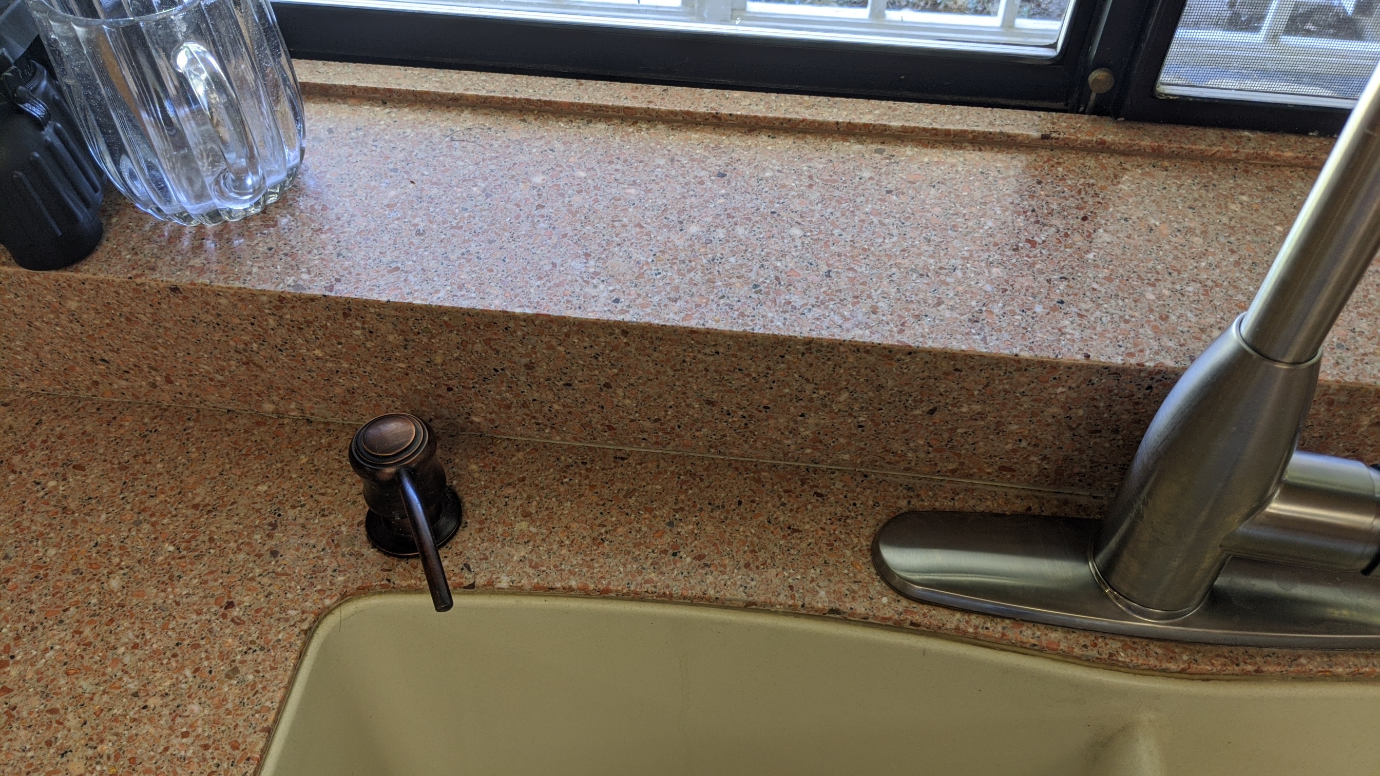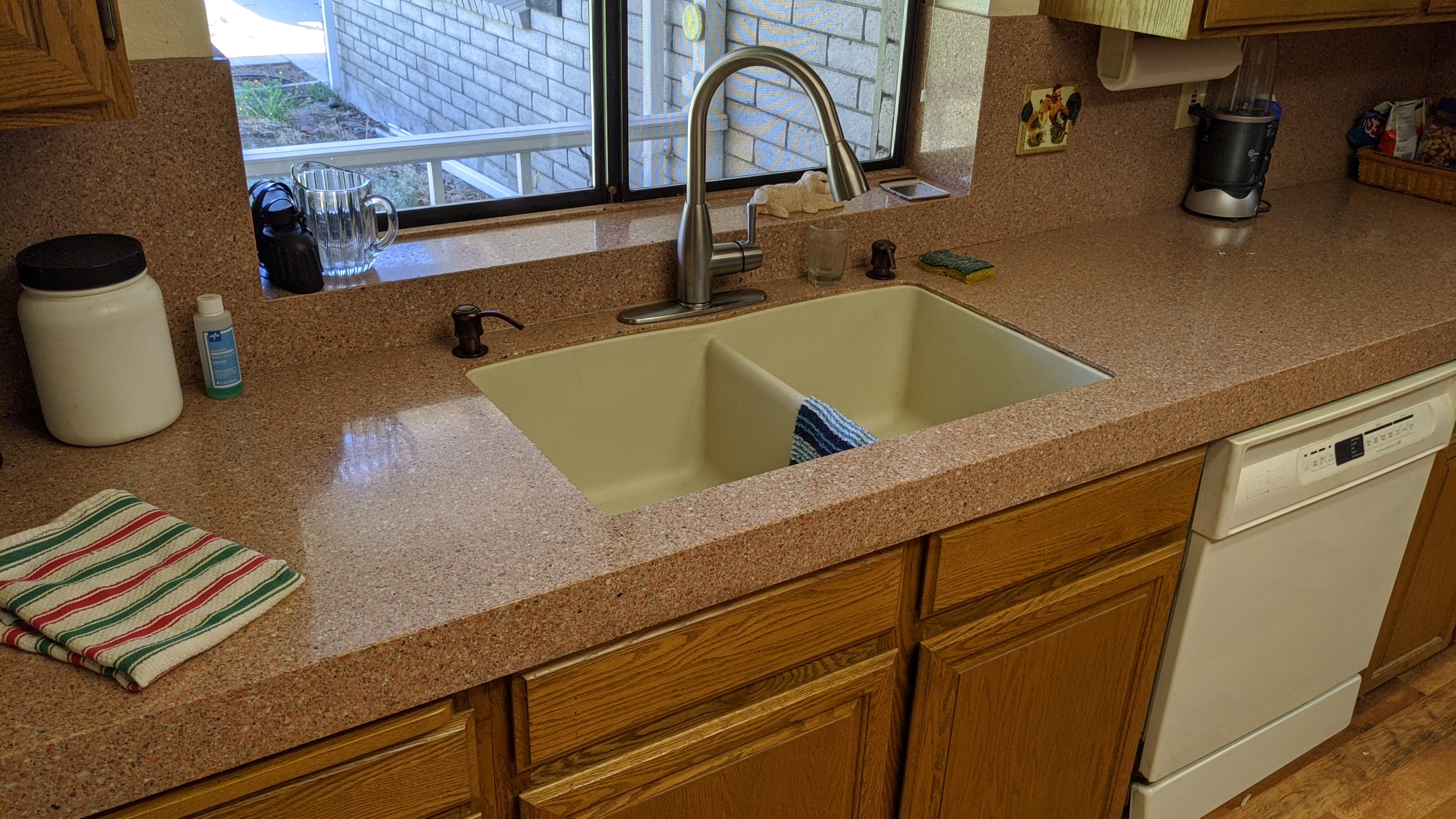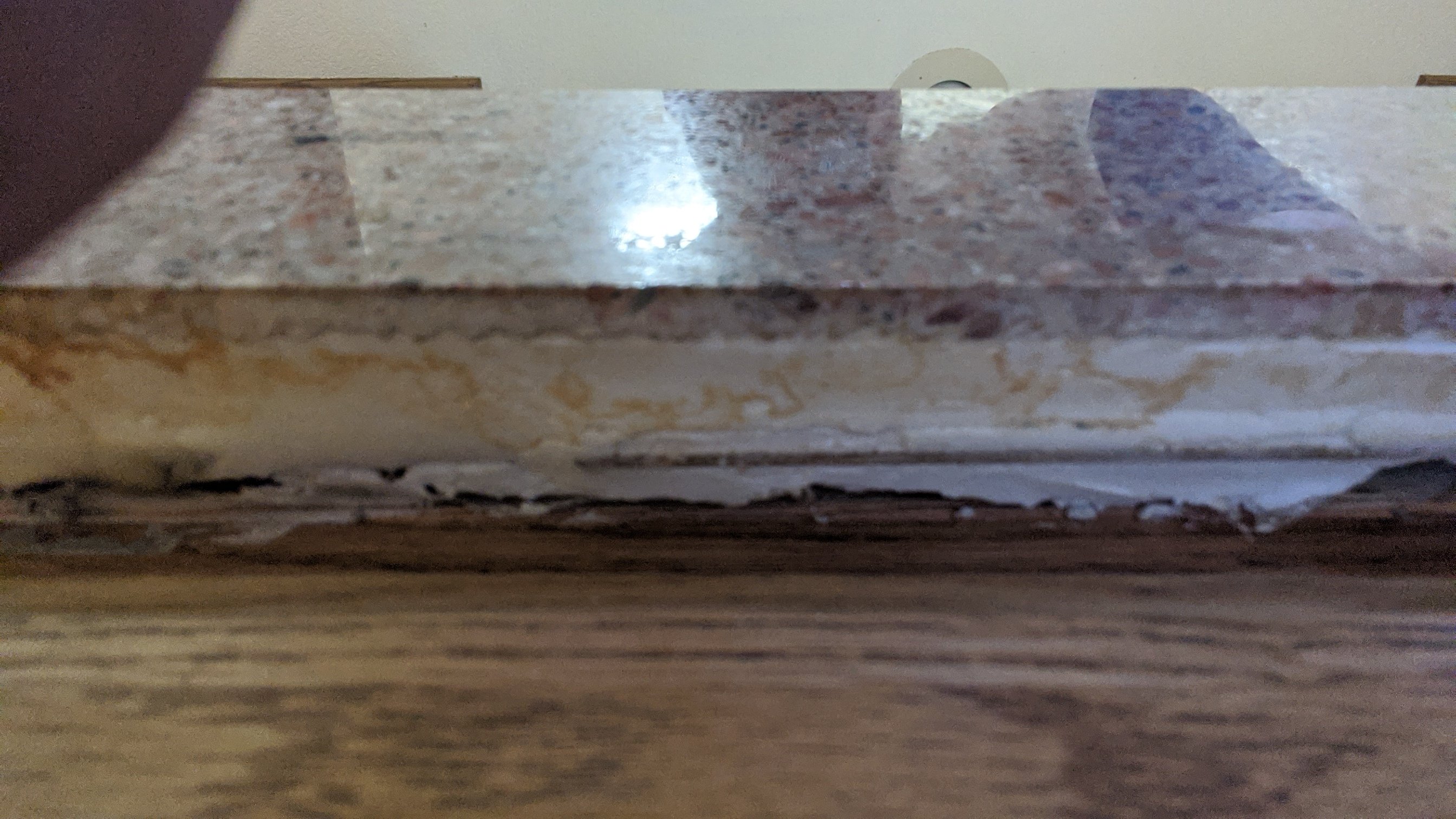 Not all counter tops are as easy as it seems.A Quartz likes synthetic just a quarter inch thick completely covering the old 1979 4x4 tiles...
