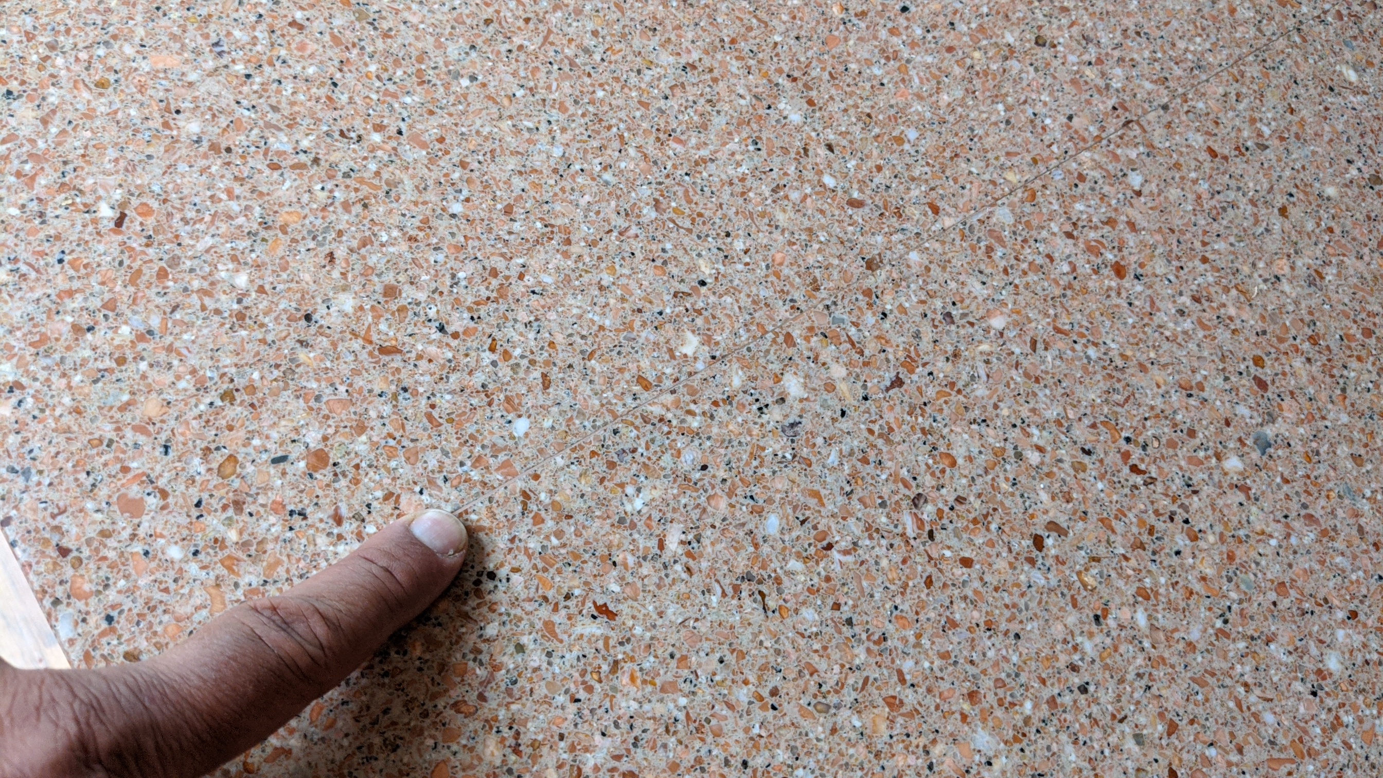 A Quartz likes synthetic just a quarter inch thick completely covering the old 1979 4x4 tiles...