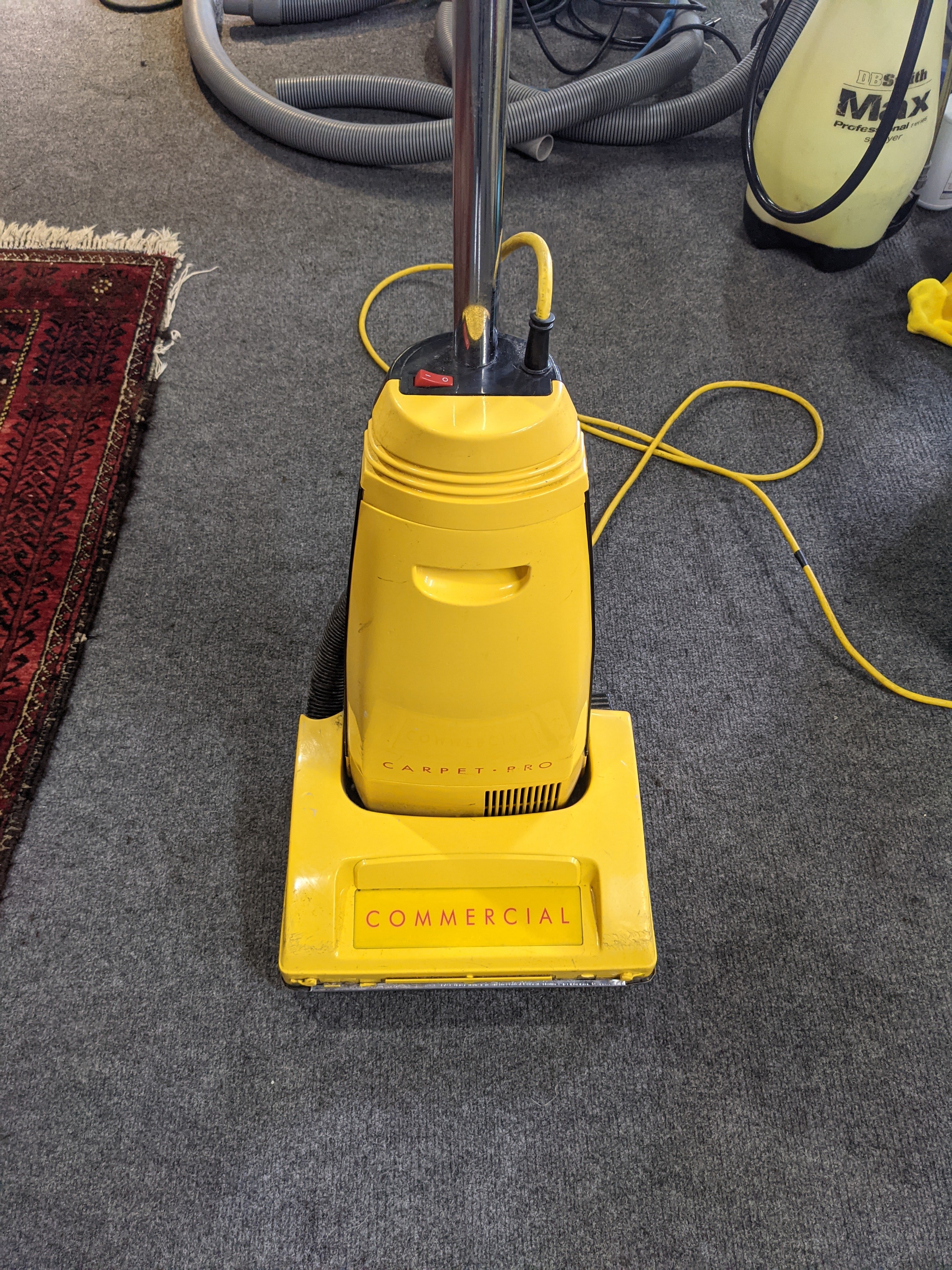 Do you want to look like the homeowner? Using a common houshold vacuum doesn't distinguish you as a professional. If there's any way that you can see your way clear to purchase a "Commercial" vac, they'll normally perform better for you, last longer, and give you a more professional appearance to boot. The modestly priced Lindhaus Activa 30 Pro is becoming popular with professional carpet cleaners. It's CRI approved too.