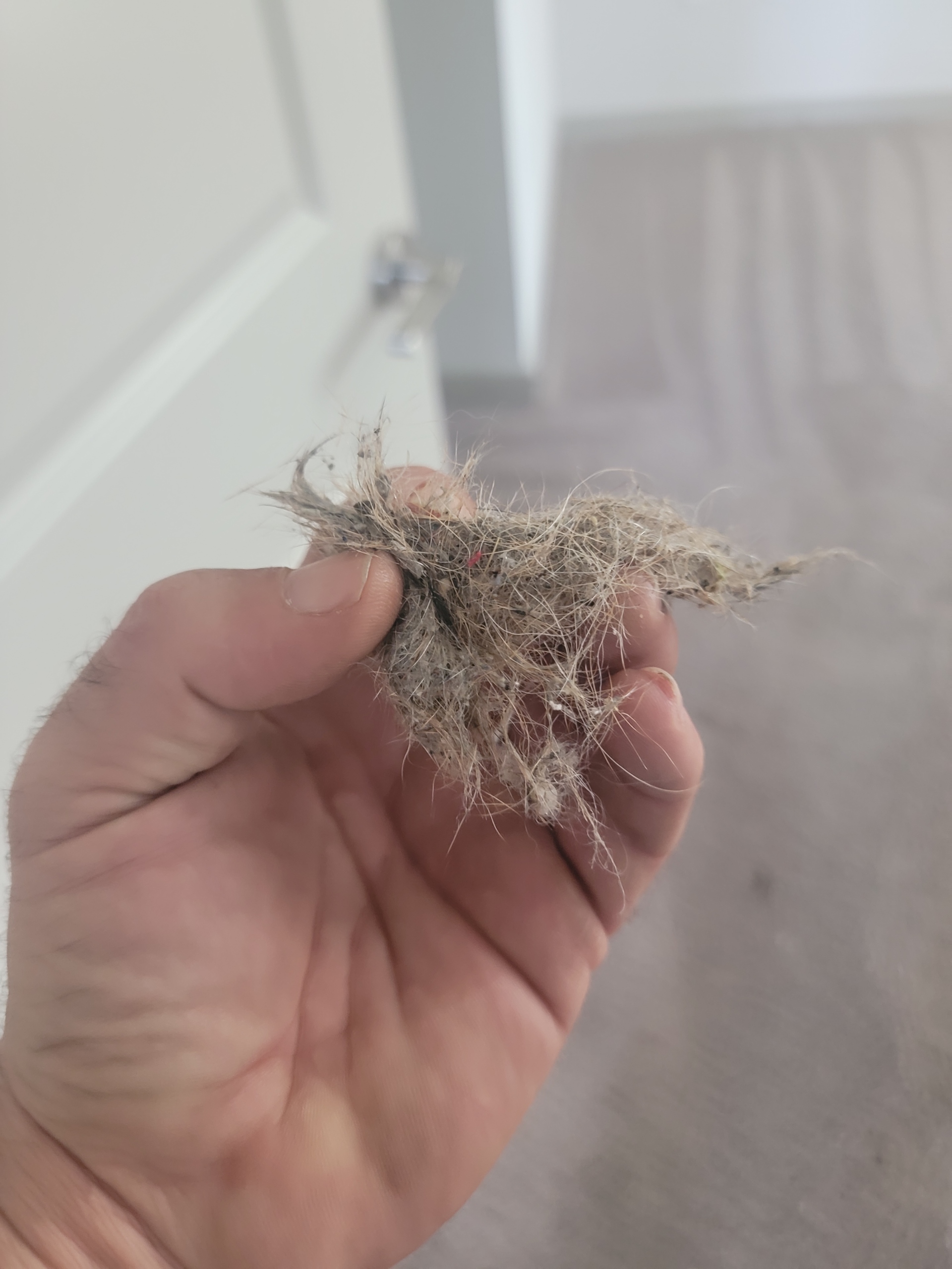 Carpet can hold a huge amount of hair and dust. It’ll never be new again. I bet you could got over it with a vacuum again and still pull a little bit more out.