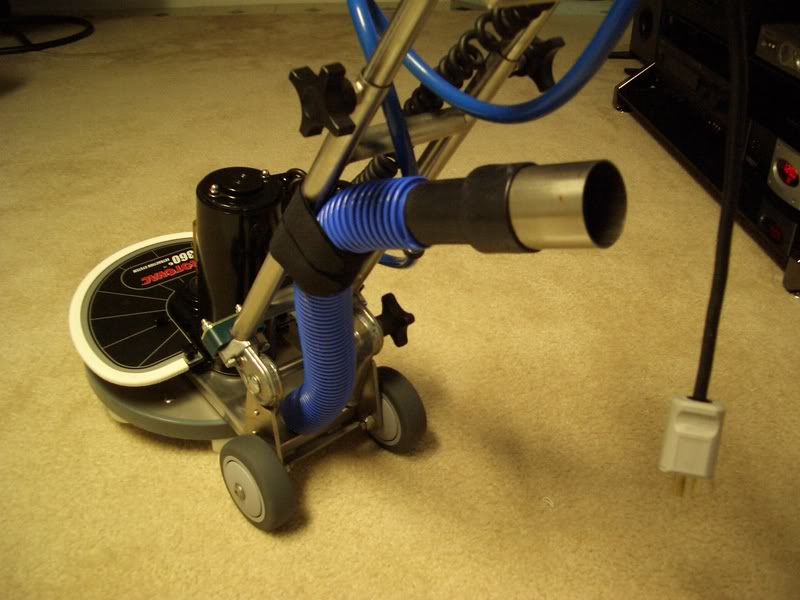I added a short section of vac hose for much easier hooking/un-hooking vac. Also cut the power cord. I plan on getting a 2" vac manifold made soon. Also, leaving the 360 handle in the desired fixed position makes hassle-free.