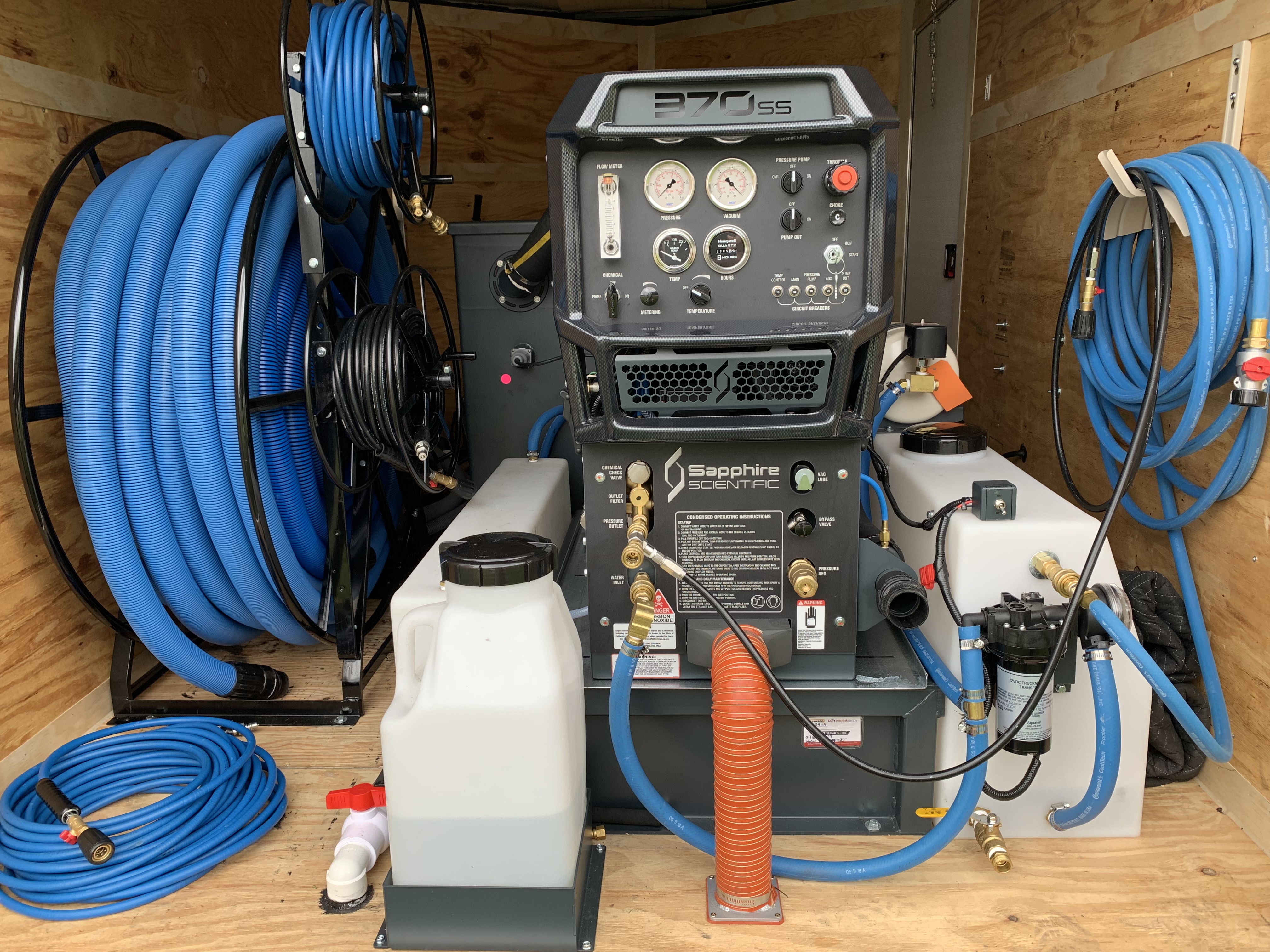 How much storage space does it take to hang 300 ft of pressure hose with bungee cords. One of the reasons I hang my hoses is that I use the same van for picking up rugs, water damage, camping etc. It allows me to empty the van for other purposes. If you have a hose reel bolted down, you're stuck with it. Not a problem for everybody, I like to be flexible. That's why I do yoga.