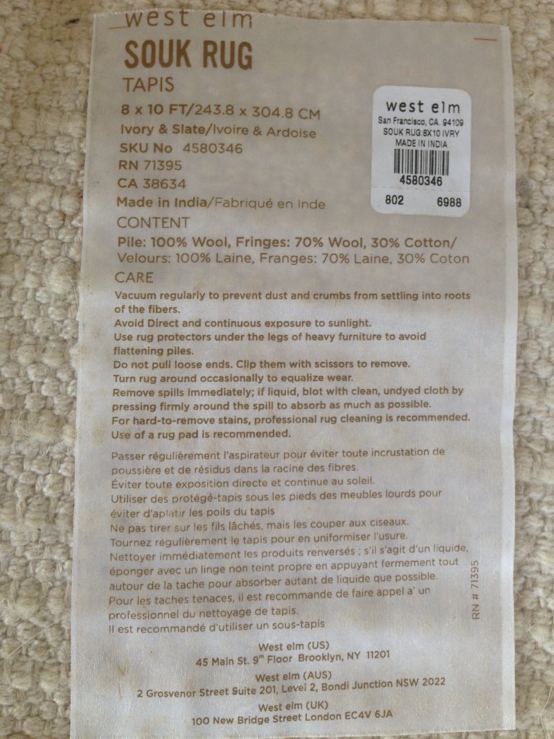 Thanks SO MUCH! I'm calling them tomorrow. That rug was the last thing on my mind...
