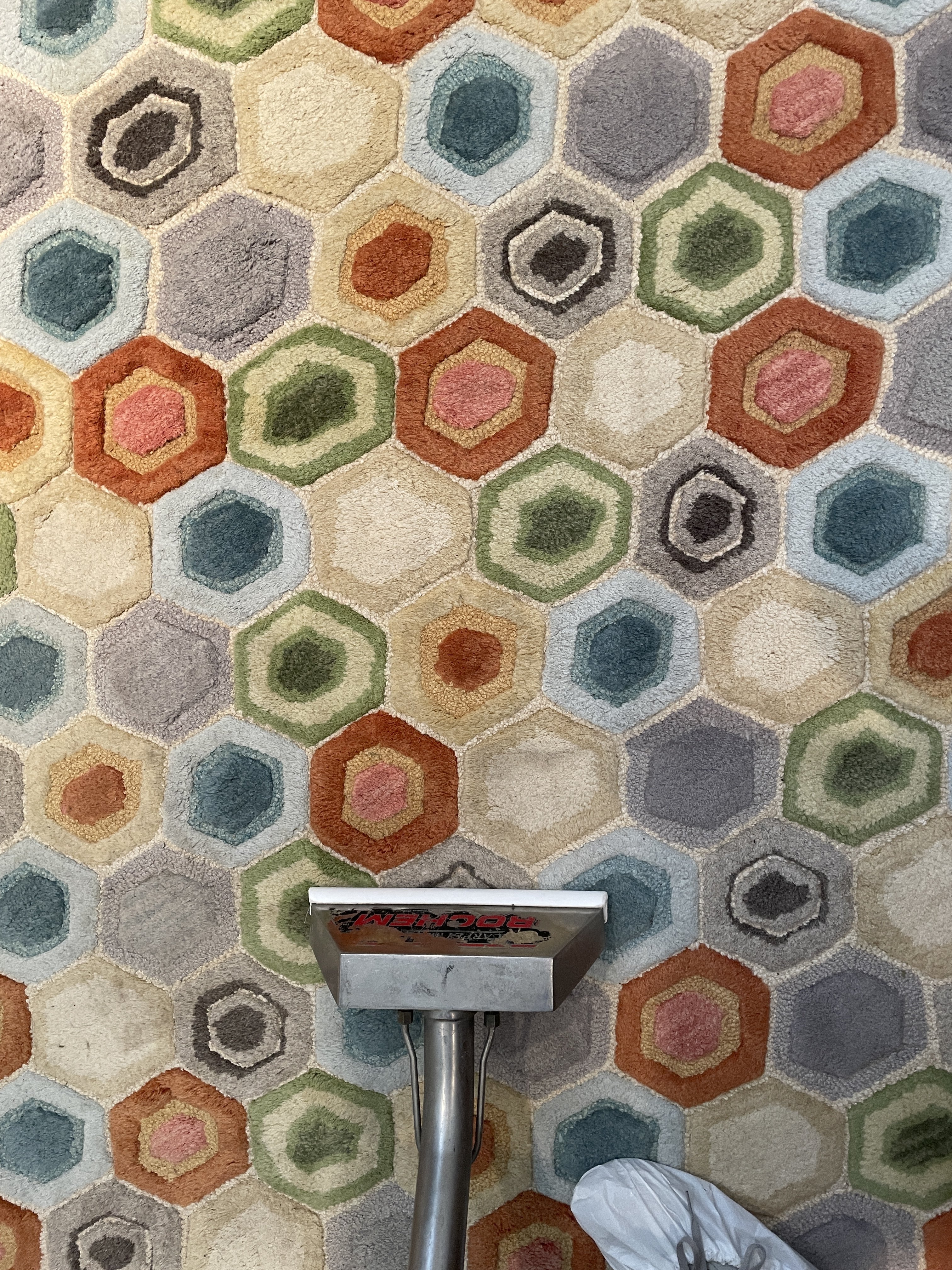 Next job was a 5 yo house with rugs bought by an interior designer. I walked from this one. piss stains were the problem, then the tag........viscose blend.