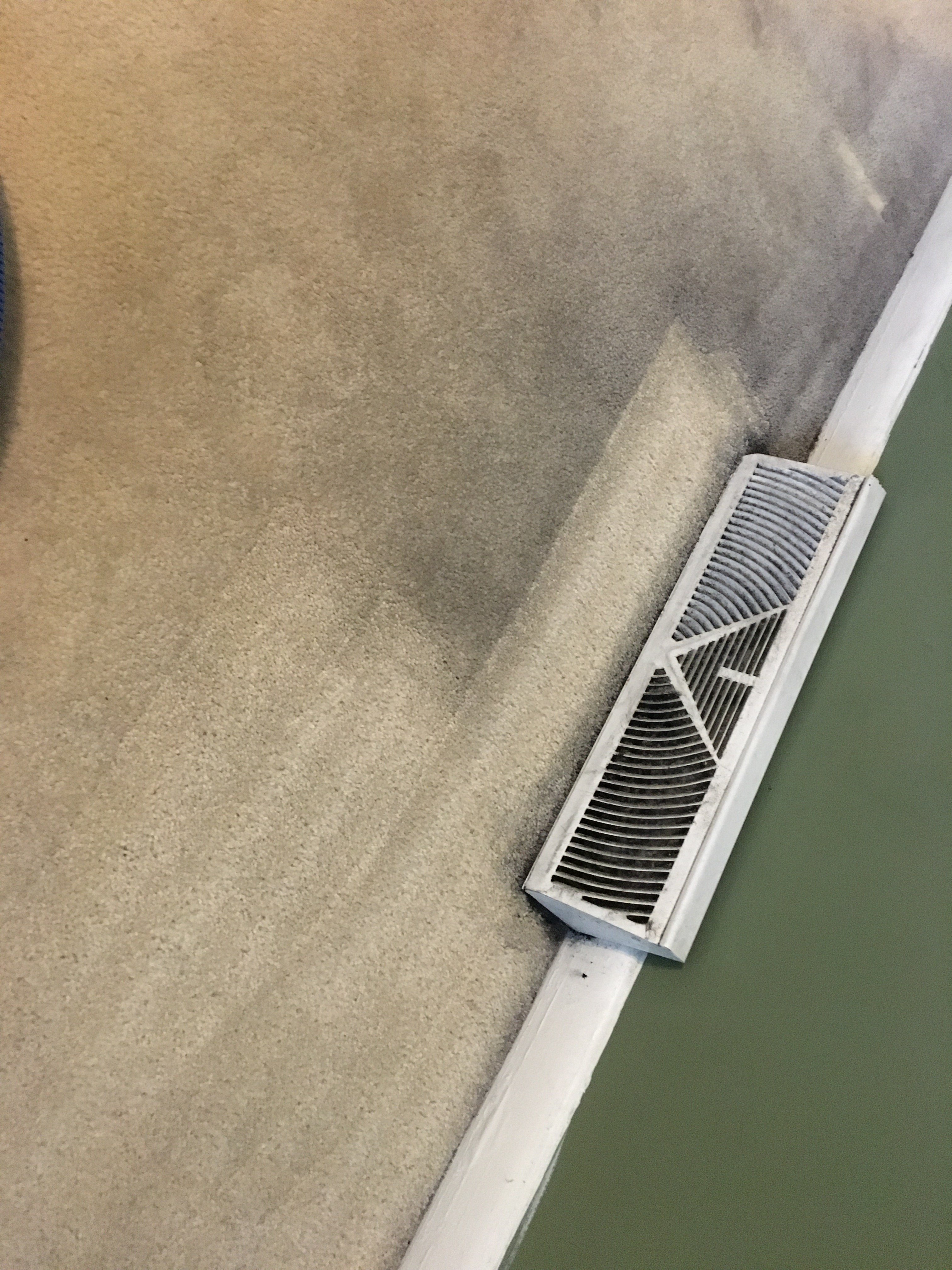 Terrible filtration throughout. walls, doorways , all the usual.. In the upstairs, the one time I cleaned up there( as they never go up or use it) it was awful. One chair with a skirt that hung had the perfect down to the floor had a perfect outline of the skirt when I moved it.